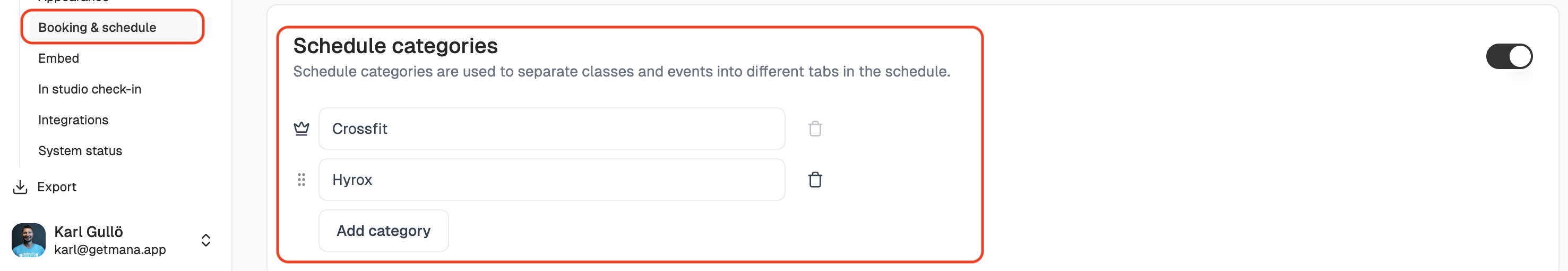 Want to keep your class schedule clean and easy to navigate? Whether you want to separate CrossFit from Hyrox, or your gym sessions from recovery bookings — you can do it with Schedule Categories in Mana.